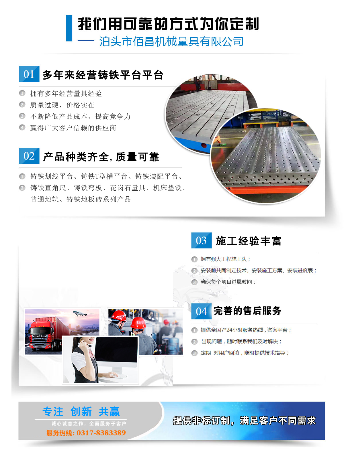 鑄鐵平板平臺(tái)系列鑄鐵地板系列大型機(jī)床鑄件系列三維柔性焊接平臺(tái)系列機(jī)床墊鐵系列地軌系列鑄鐵彎板系列鑄鐵方箱方筒系列鑄鐵V型架系列平尺、方尺系列花崗石大理石系列偏擺儀系列配重鐵系列特種扳手系列防爆工具系列量規(guī)系列建筑建材爬梯系列其他量具系列